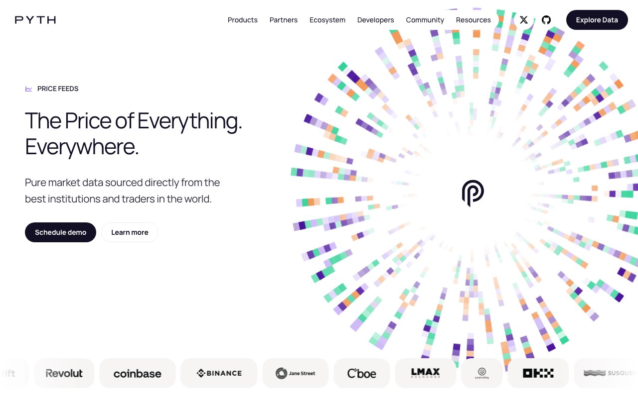 Pyth Network is a decentralized oracle delivering real-time price feeds from 128+ first-party data publishers across 2,800+ feeds on 100+ blockchains, serving 520+ DeFi applications.